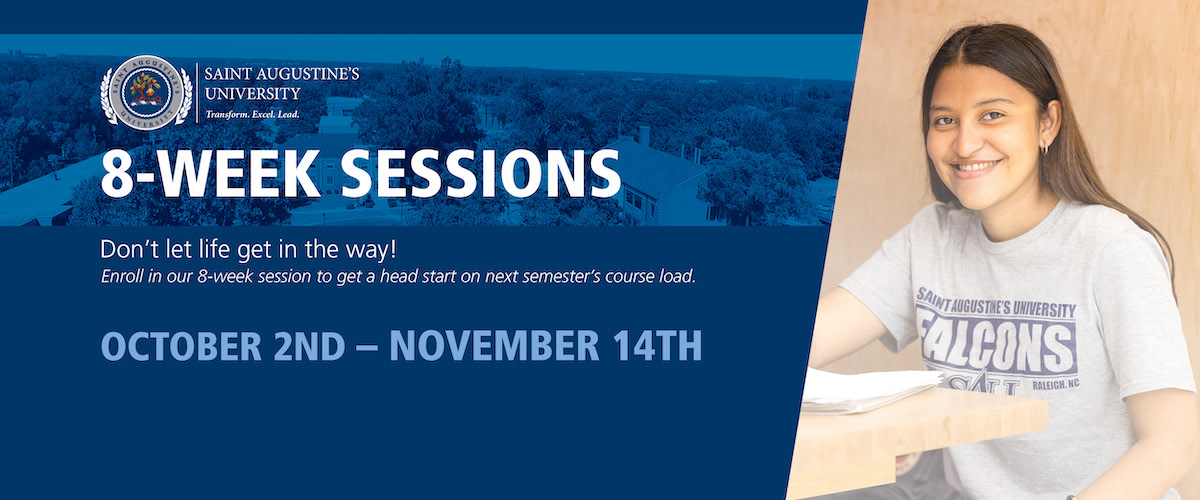 Saint Augustine’s University now offers more flexibility for you to continue your studies with our 8-week session.